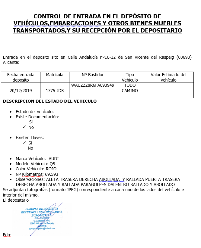Valoración inicial: 3047,00 €