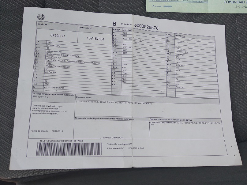 VEHICULO 8792JLC VOLKSWAGEN GOLF