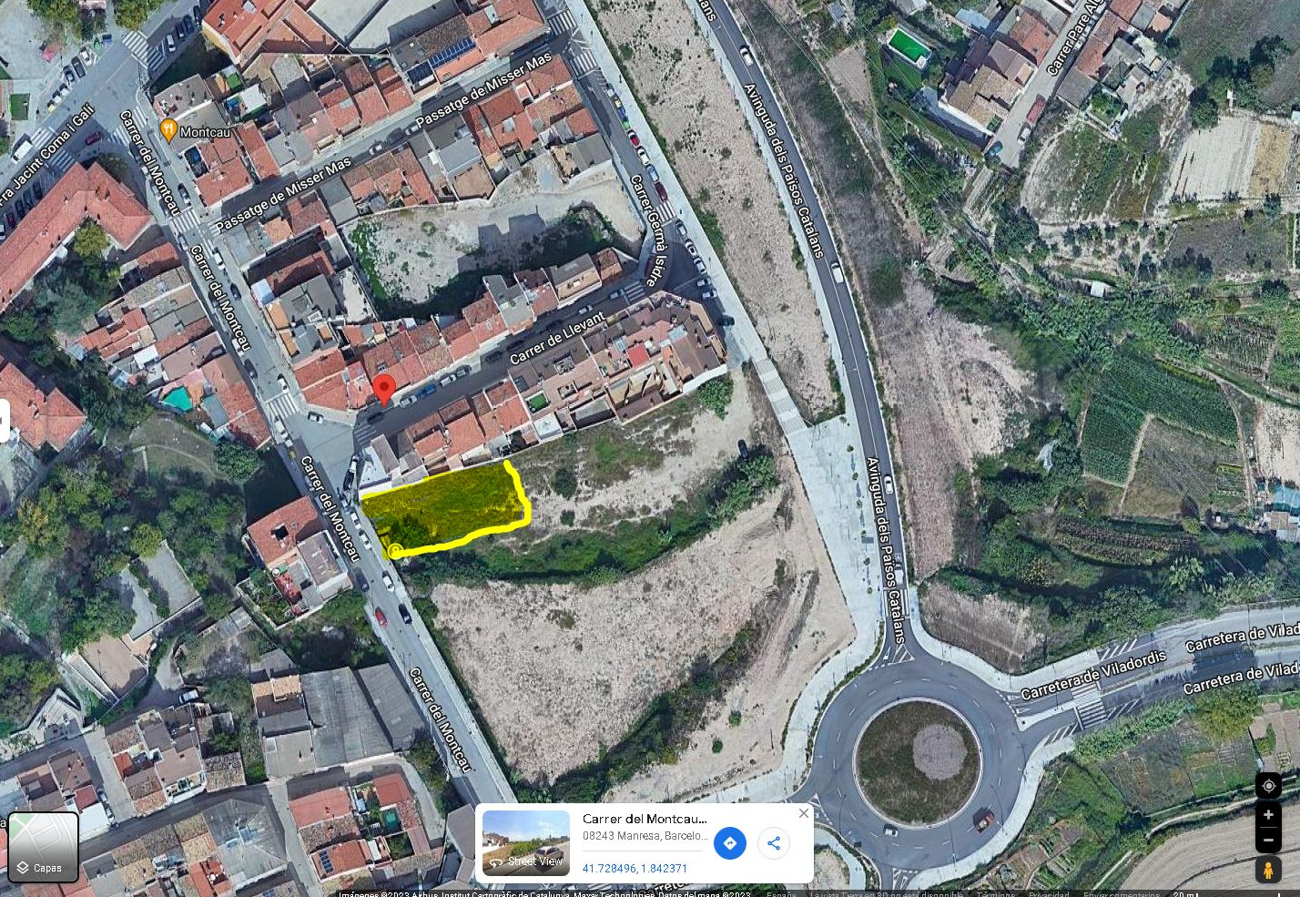 URBANA. PORCIÓN DE TERRENO, DE FORMA TRAPEZOIDAL, PENDIENTE DE URBANIZAR, SITA EN ESTA CIUDAD, EN LA PARTIDA TOSSAL DEL BOHIGAS, DE SUPERFICIE DOSCIENTOS SETENTA Y DOS METROS CUADRADOS. LINDA: AL NORTE, CON LA COMUNIDAD DE PROPIETARIOS DE LA CASA NÚMERO VEINTICINCO DE LA CALLE MONTCAU, COMUNIDAD DE PROPIETARIOS DE LA CASA NÚMERO CUATRO DE LA CALLE LLEVANT AL SUR, CON OTRA FINCA ESTE, EN LÍNEA DE CINCO METROS, CON RESTO DE FINCA MATRIZ DE LA QUE SE SEGREGA Y AL OESTE, EN LÍNEA DE ONCE METROS, CON CALLE MONTCAU.-