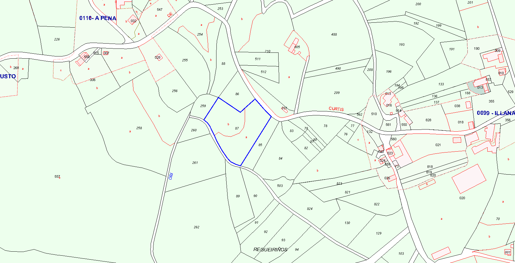 RÚSTICA: LABRADÍO, AL NORTE PASTO Y AL OESTE, TOJAL, NOMBRADO DO CODESAL O ESTANCO, SITO EN EL LUGAR DE SU NOMBRE, EN LA PARROQUIA DE FISTEUS DE CINCO MIL SETECIENTOS CATORCE METROS CUADRADOS, SEGÚN RESULTA DE CERTIFICACIÓN CATASTRAL. LINDA: NORTE, PARCELA OCHENTA Y SEIS DE CELESTINA ROCHA SÁNCHEZ Y CAMINO SUR, CAMINO Y PARCELA OCHENTA Y CINCO DE JESÚS SÁNCHEZ VALES ESTE, CAMINO Y PARCELA OCHENTA Y CINCO DE JESÚS SÁNCHEZ VALES Y OESTE, CAMINO Y PARCELA DOSCIENTOS CINCUENTA Y NUEVE DE JOSÉ FANDIÑO SÁNCHEZ. LOCALIZACIÓN CATASTRAL: POLÍGONO 17 PARCELA: 87 ESTANCO.CURTIS (A CORUÑA). REFERENCIA CATASTRAL: 15032A017000870000DK. TITULARIDAD: 100% PLENO DOMINIO