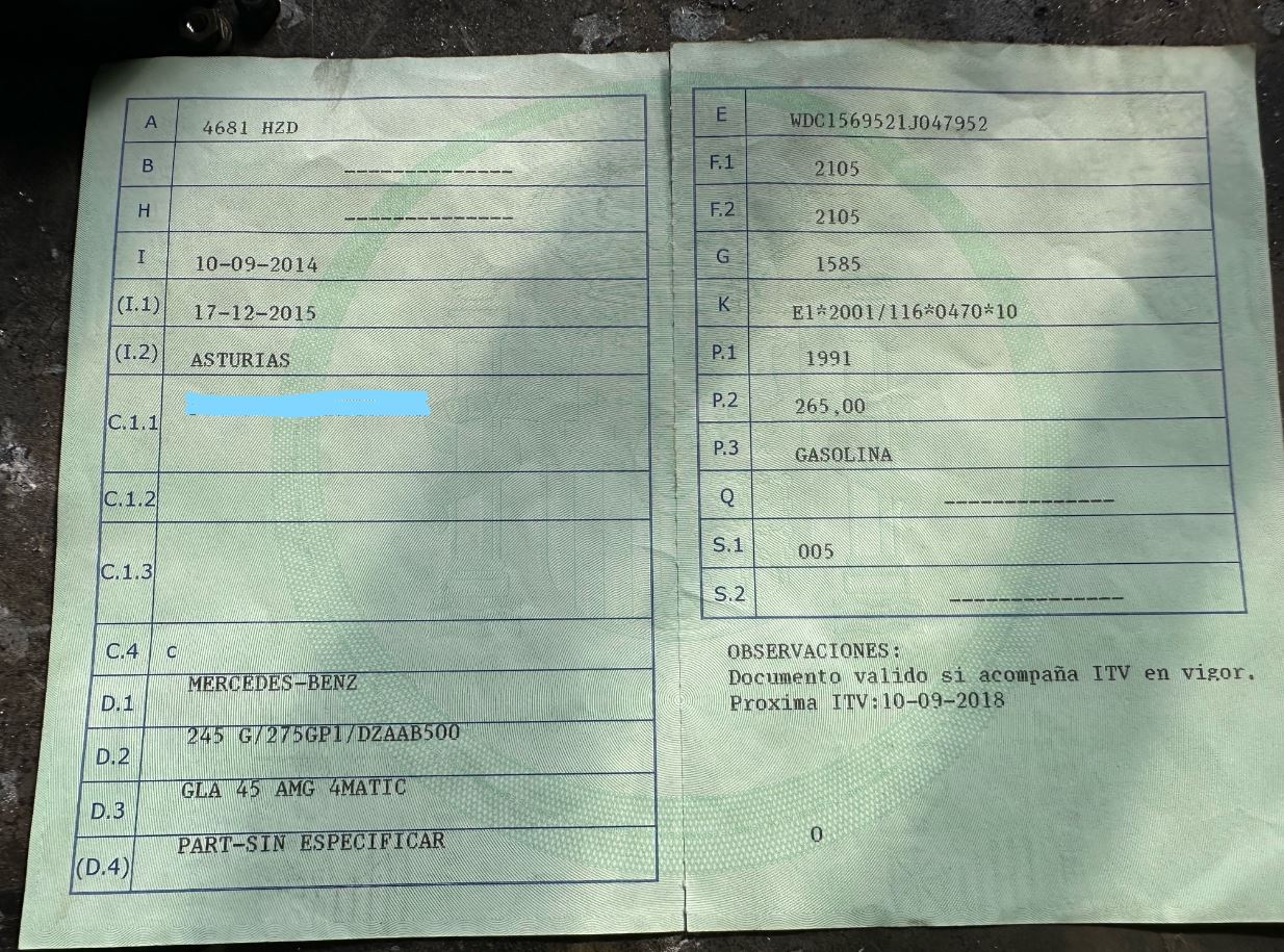 TURISMO MERCEDES-BENZ MODELO GLA 45 AMG 4MATIC. MATRÍCULA 4681HZD