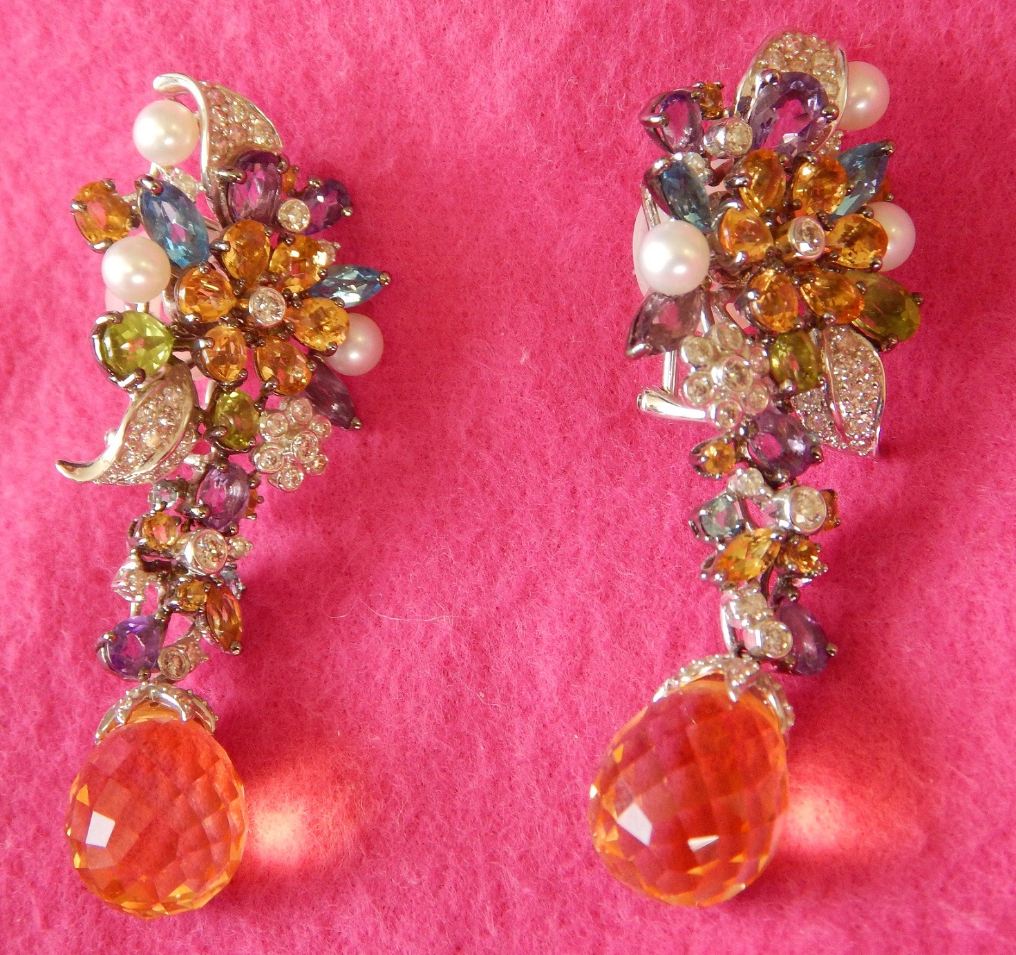 PENDIENTES DE PIEDRAS PRECIOSAS, BRILLANTES Y PERLAS, CON CIERRE OMEGA REF 6946