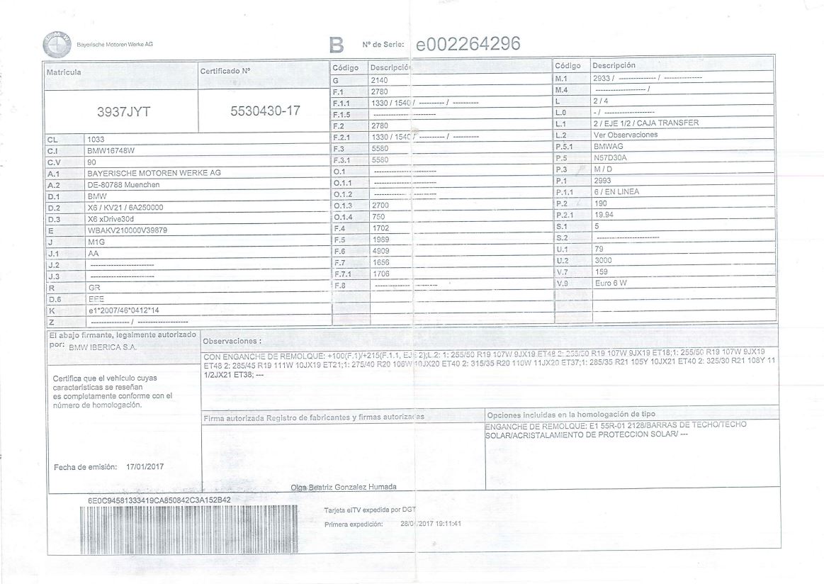 VEHICULO 3937JYT BMW X6 XDRIVE30D