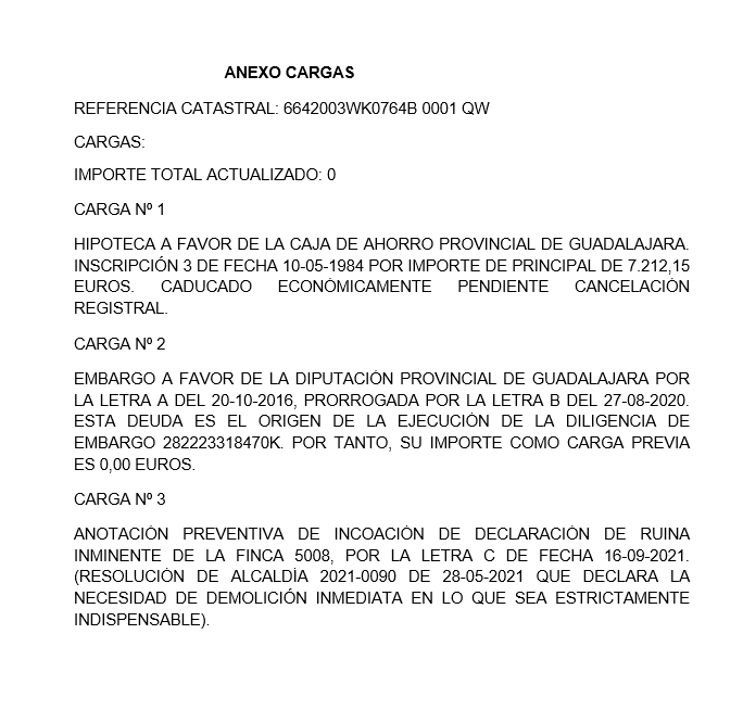 100% PLENO DOMINIO. URBANA: CASA EN TÉRMINO MUNICIPAL DE PASTRANA, CALLE BOCEGUILLAS DE ABAJO NÚMEROS 3 Y 5,CONSTA DE PISO BAJO, PRINCIPAL Y SEGUNDO COMPUESTA DE PORTAL, BODEGA, OLIVERO Y CUADRA, SALA A LA DERECHA, PAJAR Y OTRO OLIVERO, SALA, ALCOBA, COMEDOR, COCINA CON PASILLO, CUARTO EN EL SEGUNDO PISO, PAJAR, ENFRENTE, SOLANA, CINCO HABITACIONES, DESVÁN Y CORRAL A LA ESPALDA. TIENE UNA SUPERFICIE DE 133,83 M2. REFERENCIA CATASTRAL: 6642003WK0764B0001QW. PESA LA RESOLUCIÓN IMPUSTA POR EL INFORME TÉCNICO DEL AYUNTAMIENTO DE PASTRANA QUE DECLARA LA NECESIDAD DE DEMOLICIÓN INMEDIATA DE LA FINCA.