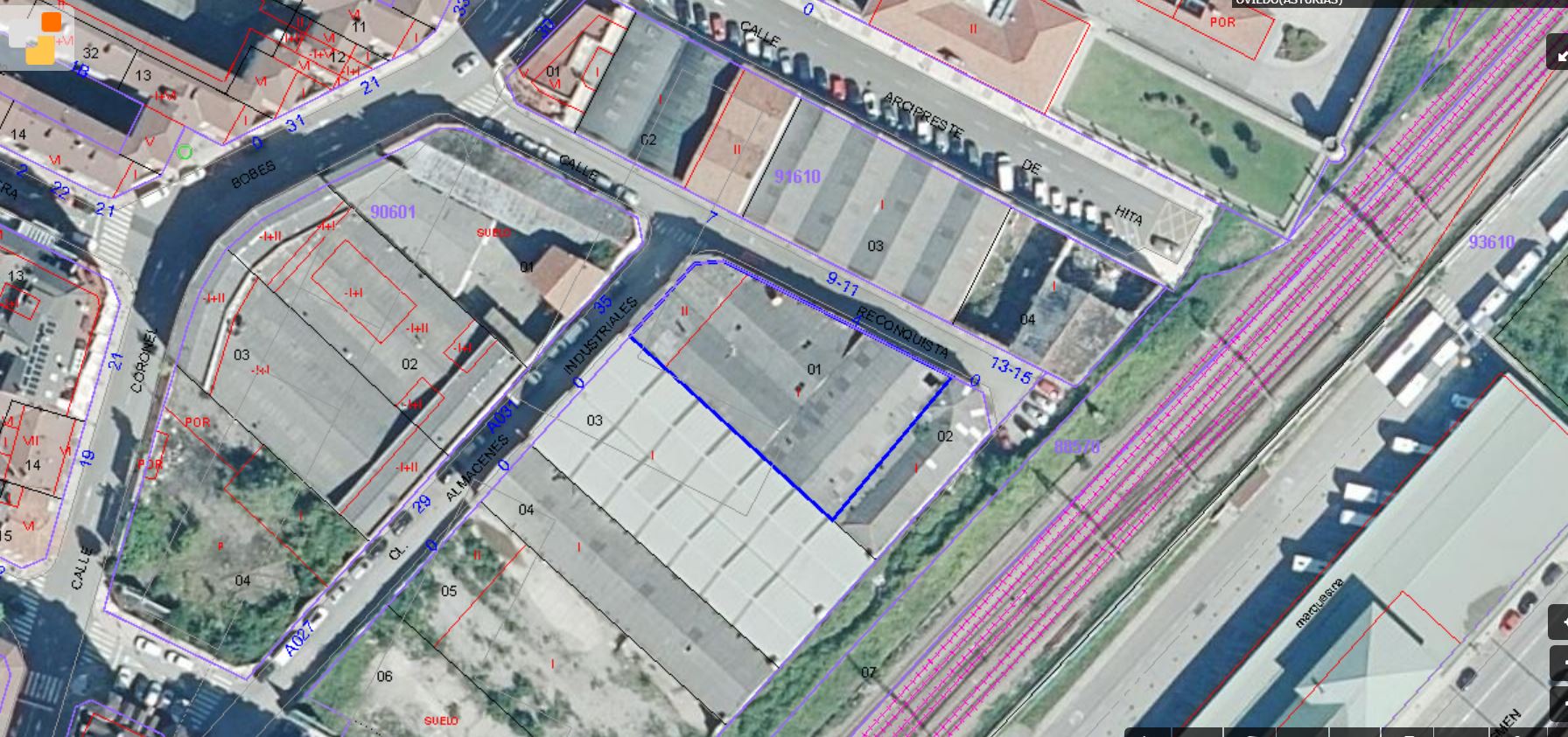 EDIFICIO DE DOS PLANTAS SEMIDERRUIDO, QUE ESTUVO DESTINADO A FÁBRICA DE BALDOSAS, SITO EN LA CALLE RECONQUISTA Nº 4, DE OVIEDO. OCUPA UNA SUPERFICIE DE 805,20 M2. SEGÚN EL CATASTRO TIENE 1.286 M2 CONSTRUIDOS, Y LA PARCELA 1.107 M2 DE SUPERFICIE GRÁFICA. ESTÁ CLASIFICADA COMO SUELO URBANO NO CONSOLIDADO E INCLUIDA EN LA UG-AIN ALMACENES INDUSTRIALES SEGÚN EL PGOU DEL AYUNTAMIENTO DE OVIEDO, NO TENIENDO EL TERRENO LA CONSIDERACIÓN DE SOLAR.