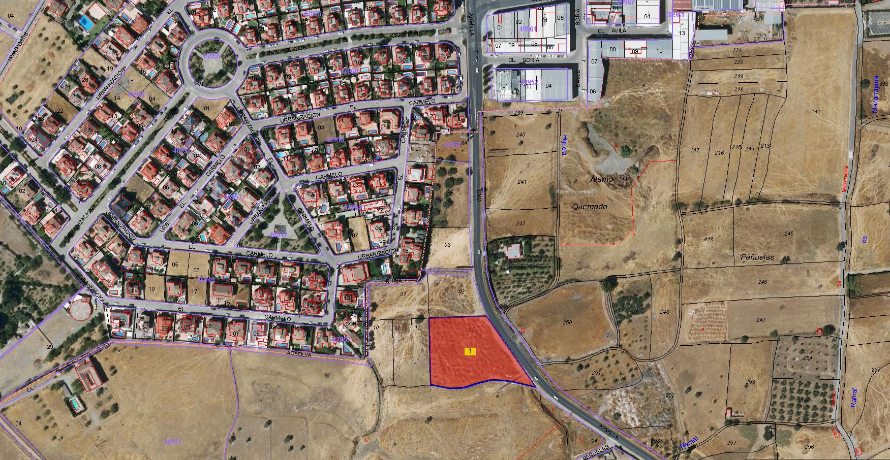 100% DEL PLENO DOMINIO DE LA RUSTICA: HAZA DE TIERRA DE RIEGO EN TÉRMINO DE LOS OGIJARES, SITUADA EN EL CAÑO DEL ALAMO QUEMADO, DE CABIDA DE CUARENTA Y SEIS AREAS, VEINTITRES CENTIAREAS Y TREINTA Y SEIS DECÍMETROS CUADRADOS. LINDA: NORTE Y SUR, TIERRAS DE DON MANUEL LÓPEZ DE LA CAMARA ESTE, CON EL CAMINO QUE CONDUCE DE ARMILLA A LOS OGÍJARES, Y OESTE, TIERRAS DE FRANCISCO GARCÍA GIMÉNEZ Y FRANCISCO TORRES MUÑOZ
